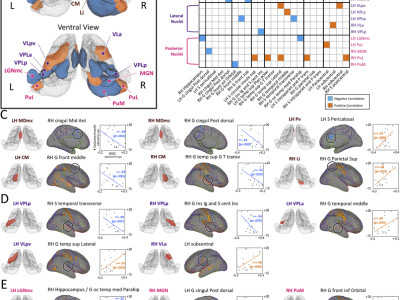 Magnitude of RSFC between thalamic nuclei and other brain regions in..