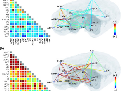 Pair‐wise functional connectivity (FC) is shown in the color encoded..
